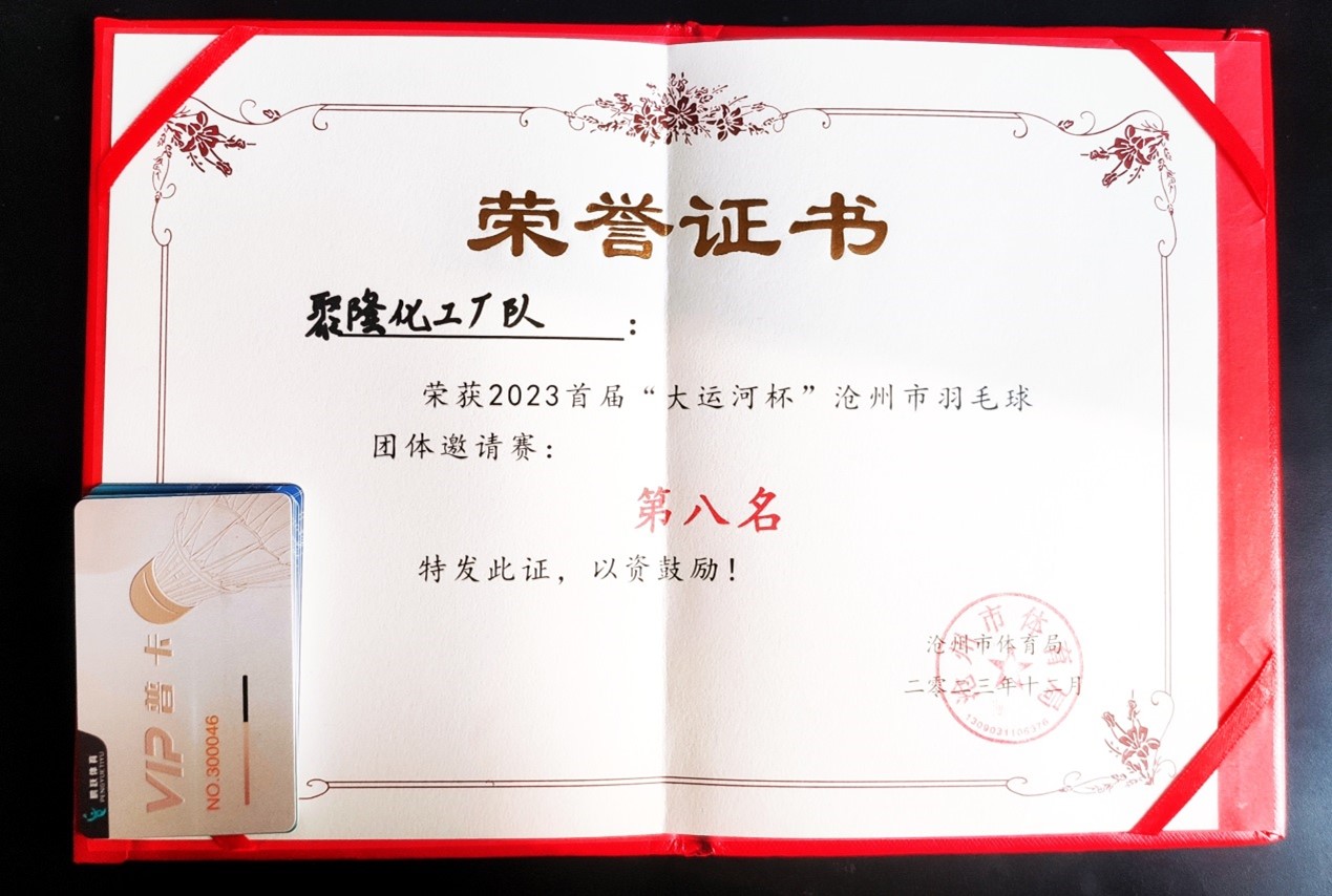 12月16日,滄州市首屆“大運河杯”職工羽毛球比賽混合團體賽圓滿落下帷幕,聚隆化工羽毛球隊頑強拚搏、發揮出色,展現出較高的競技水平,最終獲得混合團體賽第八名的好成績。